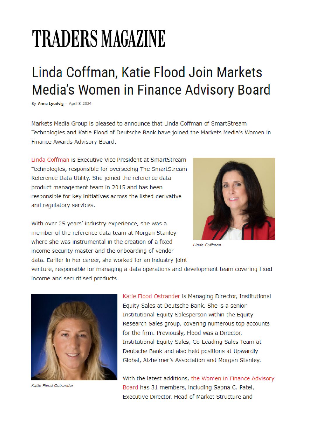 Linda Coffman, Katie Flood Join Markets Media’s Women in Finance Advisory Board