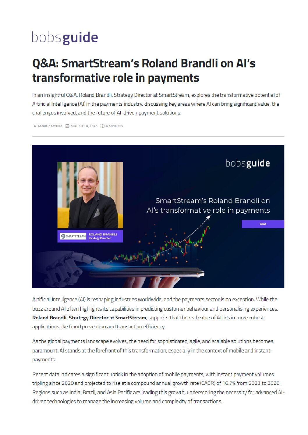 Q&A: Smartstream’s Roland Brandli on AI’s transformative role in payments