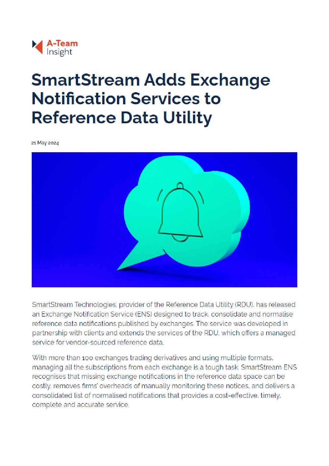 Smartstream Adds Exchange Notification Services to Reference Data Utility