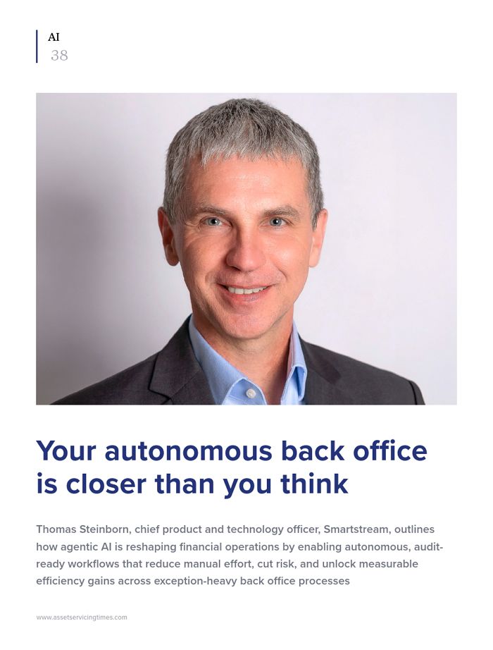 Thomas Steinborn, chief product and technology officer, Smartstream, outlines how agentic AI is reshaping financial operations by enabling autonomous, audit-ready workflows that reduce manual effort, cut risk, and unlock measurable efficiency gains across exception-heavy back office processes